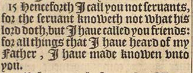 15 Henceforth I call you not seruants, for the seruant knoweth not what his lord doth, but I haue called you friends: for all things that I haue heard of my Father, I haue made knowen vnto you.