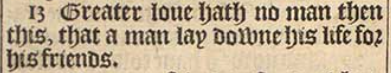 13 Greater loue hath no man then this, that a man lay downe his life for his friends.
