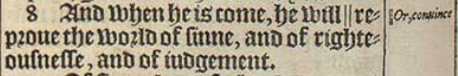 8 And when he is come, he will || reproue the world of sinne, and of righteousnesse, and of iudgement.[||Or, conuince]
