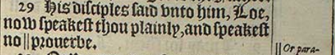 29 His disciples said vnto him, Loe, now speakest thou plainly, and speakest no || prouerbe.[||Or, parable.]