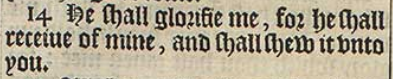 14 He shall glorifie me, for he shall receiue of mine, and shall shew it vnto you.