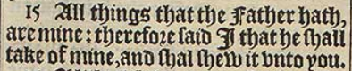 15 All things that the Father hath, are mine: therefore said I that he shall take of mine, and shal shew it vnto you.