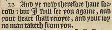 22 And ye now therefore haue sorrow: but I will see you againe, and your heart shall reioyce, and your ioy no man taketh from you.
