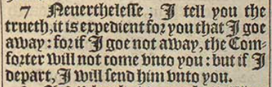 7 Neuerthelesse; I tell you the trueth, it is expedient for you that I goe away: for if I goe not away, the Comforter will not come vnto you: but if I depart, I will send him vnto you.