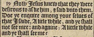 19 Now Iesus knew that they were desirous to aske him, & said vnto them, Doe ye enquire among your selues of that I saide, A litle while, and ye shall not see mee: and againe; A little while and ye shall see me?