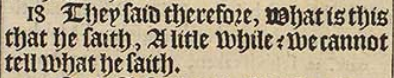 18 They said therefore, What is this that he saith, A litle while? we cannot tell what he saith.