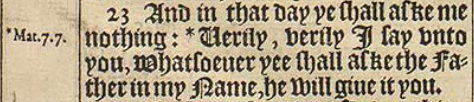 23 And in that day ye shall aske me nothing: *Uerily, verily I say vnto you, Whatsoeuer yee shall aske the Father in my Name, he will giue it you.[*Mat.7.7.]