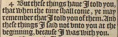 4 But these things haue I told you, that when the time shall come, ye may remember that I told you of them. And these things I said not vnto you at the beginning, because I was with you.