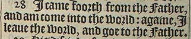 28 I came foorth from the Father, and am come into the world: againe, I leaue the world, and goe to the Father.
