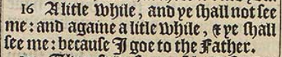 16 A litle while, and ye shall not see me: and againe a litle while, & ye shall see me: because I goe to the Father.