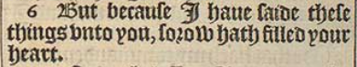 6 But because I haue saide these things vnto you, sorow hath filled your heart.