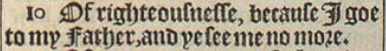 10 Of righteousnesse, because I goe to my Father, and ye see me no more.