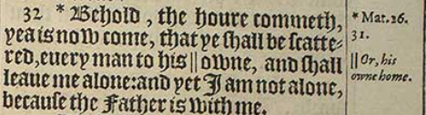 32 *Seht, die Stunde kommt, ja ist nun gekommen, dass ihr zerstreut werdet, jeder für sich ||selbst und mich allein lassen werdet: Und doch bin ich nicht allein, weil der Vater bei mir ist.[*Matthäus 26:31 ||oder: sein eigenes Heim]
