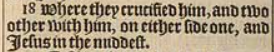 18 Where they crucified him, and two other with him, on either side one, and Iesus in the middest.