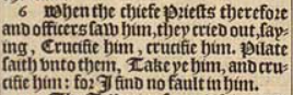 6 When the chiefe Priests therefore and officers saw him, they cried out, saying, Crucifie him, crucifie him. Pilate saith vnto them, Take ye him, and crucifie him: for I find no fault in him.