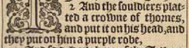 2 And the souldiers platted a crowne of thornes, and put it on his head, and they put on him a purple robe,