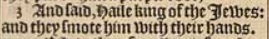3 And said, Haile king of the Iewes: and they smote him with their hands.