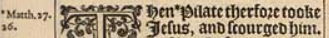1 Then *Pilate therfore tooke Iesus, and scourged him.[*Matth.27.26.]