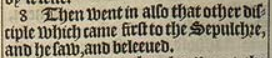 8 Then went in also that other disciple which came first to the Sepulchre, and he saw, and beleeued.