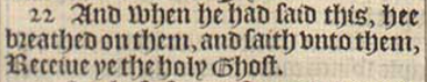 22 And when he had said this, hee breathed on them, and saith vnto them, Receiue ye the holy Ghost.