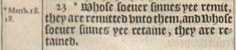 23 *Whose soeuer sinnes yee remit, they are remitted vnto them, and whose soeuer sinnes yee retaine, they are retained.[*Matth.18.18.]