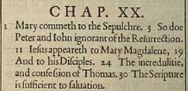 1 Maria kommt zur Grabkammer. 3 So auch Petrus und Johannes, unwissend von der Auferstehung. 11 Jesus erscheint Maria Magdalena 19 und seinen Jüngern. 24 Die Ungläubigkeit und das Bekenntnis des Thomas. 30 Die Schrift ist ausreichend zur Errettung.