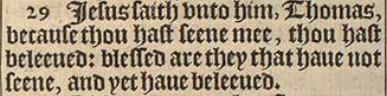 29 Iesus saith vnto him, Thomas, because thou hast seene mee, thou hast beleeued: blessed are they that haue not seene, and yet haue beleeued.