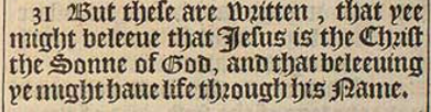 31 But these are written, that yee might beleeue that Iesus is the Christ the Sonne of God, and that beleeuing ye might haue life through his Name.