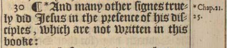 30 ¶ *And many other signes truely did Iesus in the presence of his disciples, which are not written in this booke:[*Chap.21.25.]