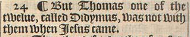 24 ¶ But Thomas one of the twelue, called Didymus, was not with them when Iesus came.