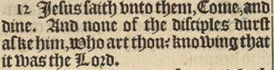 12 Iesus saith vnto them, Come, and dine. And none of the disciples durst aske him, Who art thou? knowing that it was the Lord.