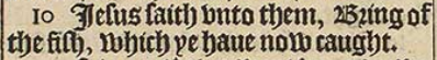 10 Iesus saith vnto them, Bring of the fish, which ye haue now caught.