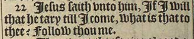 22 Iesus saith vnto him, If I will that he tary till I come, what is that to thee? Follow thou me.