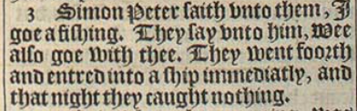3 Simon Peter saith vnto them, I goe a fishing. They say vnto him, Wee also goe with thee. They went foorth and entred into a ship immediatly, and that night they caught nothing.