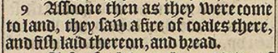 9 Assoone then as they were come to land, they saw a fire of coales there, and fish laid thereon, and bread.