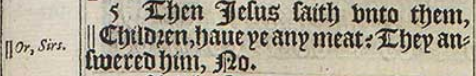 5 Then Iesus saith vnto them, || Children, haue ye any meat? They answered him, No.[||Or, Sirs.]