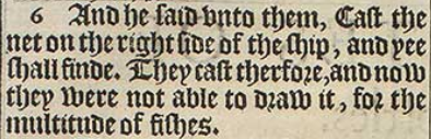 6 And he said vnto them, Cast the net on the right side of the ship, and yee shall finde. They cast therfore, and now they were not able to draw it, for the multitude of fishes.
