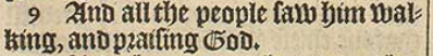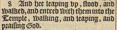 8 And hee leaping vp, stood, and walked, and entred with them into the Temple, walking, and leaping, and praising God.