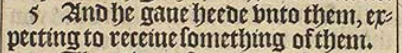 5 And he gaue heede vnto them, expecting to receiue something of them.