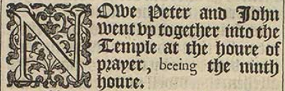 1 Nowe Peter and Iohn went vp together into the Temple at the houre of prayer, beeing the ninth houre.