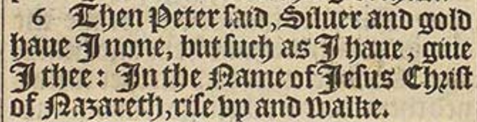 6 Then Peter said, Siluer and gold haue I none, but such as I haue, giue I thee: In the Name of Iesus Christ of Nazareth, rise vp and walke.