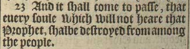23 And it shall come to passe, that euery soule which will not heare that Prophet, shalbe destroyed from among the people.