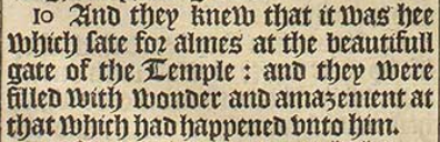 10 And they knew that it was hee which sate for almes at the beautifull gate of the Temple: and they were filled with wonder and amazement at that which had happened vnto him.