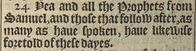 24 Yea and all the Prophets from Samuel, and those that follow after, as many as haue spoken, haue likewise foretold of these dayes.