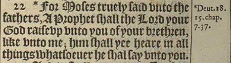 22 *For Moses truely said vnto the fathers, A Prophet shall the Lord your God raise vp vnto you of your brethren, like vnto me; him shall yee heare in all things whatsoeuer he shal say vnto you.[*Deut.18.15. chap. 7.37.]