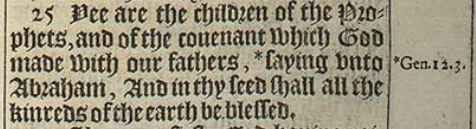 25 Yee are the children of the Prophets, and of the couenant which God made with our fathers, *saying vnto Abraham, And in thy seed shall all the kinreds of the earth be blessed.[*Gen.12.3.]