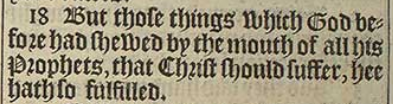 18 But those things which God before had shewed by the mouth of all his Prophets, that Christ should suffer, hee hath so fulfilled.