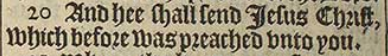 20 And hee shall send Iesus Christ, which before was preached vnto you.