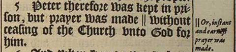 5 Peter therefore was kept in prison, but prayer was made || without ceasing of the Church vnto God for him.[||Or, instant and earnest prayer was made.]