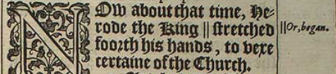 1 Now about that time, Herode the King || stretched foorth his hands, to vexe certaine of the Church.[||Or, began.]